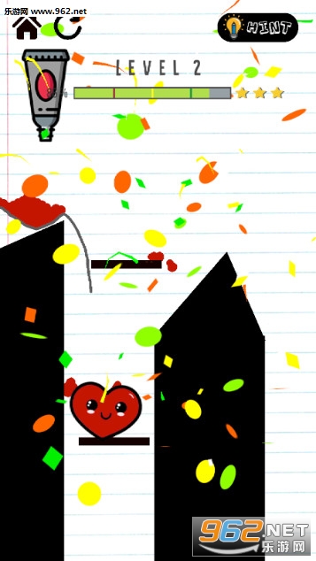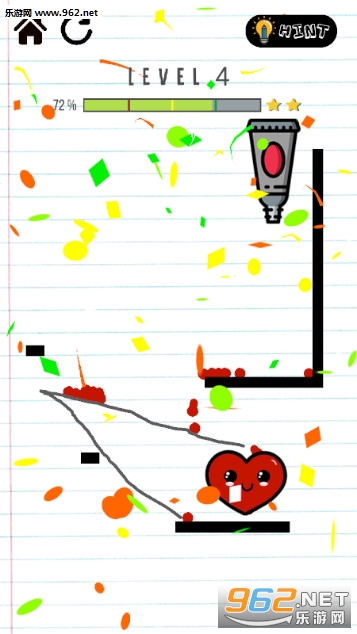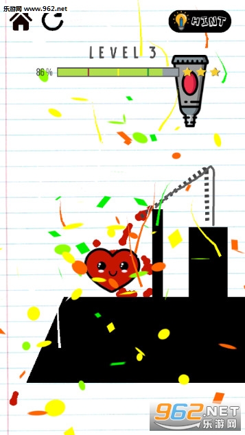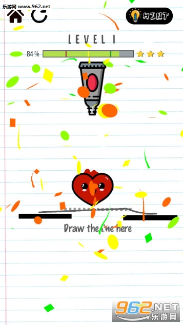《心脏线手游》是一款可爱有趣的划线闯关游戏,游戏的玩法跟大部分的划线闯关游戏是一样的,玩家要画出线条将水龙头里面红色的颜料引导到心心里面,让无色的心心变成红色,遇到不会的关卡还可以寻求提示。