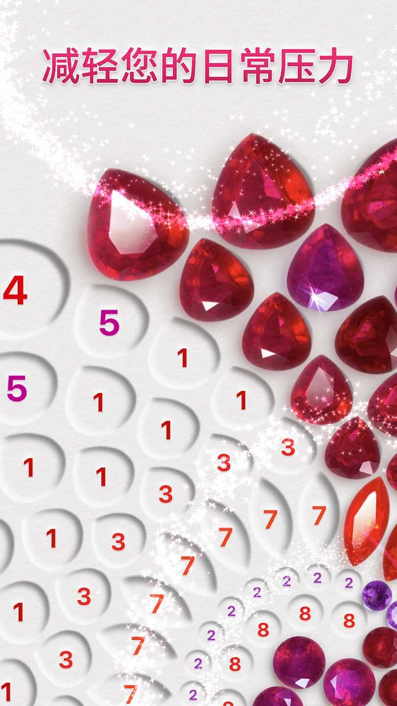 dazzly绚石工坊免费版是一款休闲好玩的数字填色游戏,在这里每天都有各种新图案等你来体验,根据数字选择不同的宝石进行填充,减轻你的日常压力,分享你的艺术作品,感兴趣的玩家快来本站下载吧。