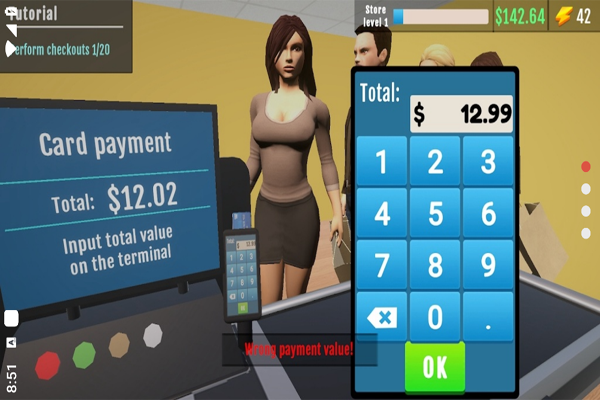 回到店内,点击收银台开始收取顾客的钱款。