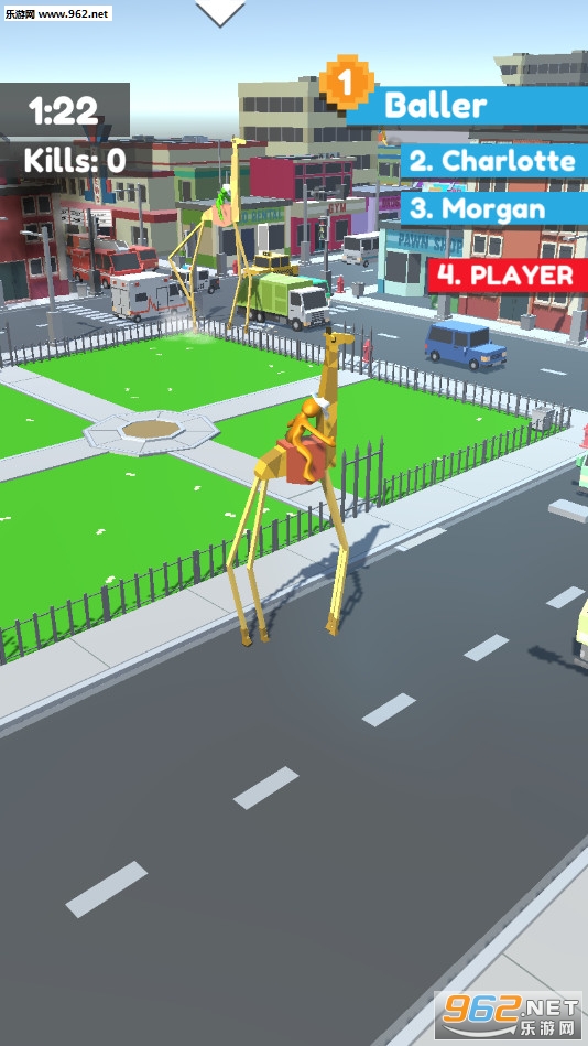 玩家在游戏中将坐在一只长颈鹿的背上,你需要控制它在城市中自由的行走,踩踏花草树木,长椅,路灯,逐渐变成汽车,卡车,房屋让自己变得强大,还能干掉比你小的对手。游戏以卡通风格为主,游戏中拥有众多可爱的动物,玩家们需要骑着动物进行破坏,别小看了动物们的力量,就连房屋都能摧毁,快来骑着动物们奔跑吧,摧毁阻挡你的一切。游戏采用两分钟一局的模式,玩家进入游戏时会自由匹配对手,你需要控制你的长颈鹿快速的在城镇中踩踏一切,让自己变得更加强大,还能解锁新的动物皮肤来挑战哦!