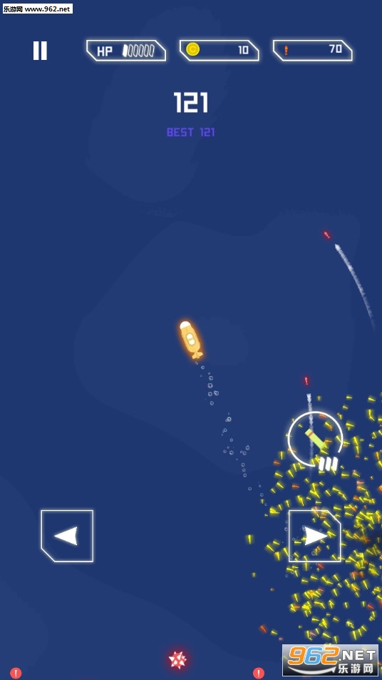 3、考验你的精湛操作,不断炸毁更多潜艇;