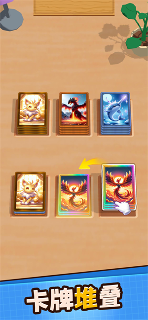 2、游戏中各种怪物的设计都非常可爱,开启卡包后,会刷新随机不同排序的卡片,玩家需要移动卡片放到收藏册中,还要保证位置的正确。