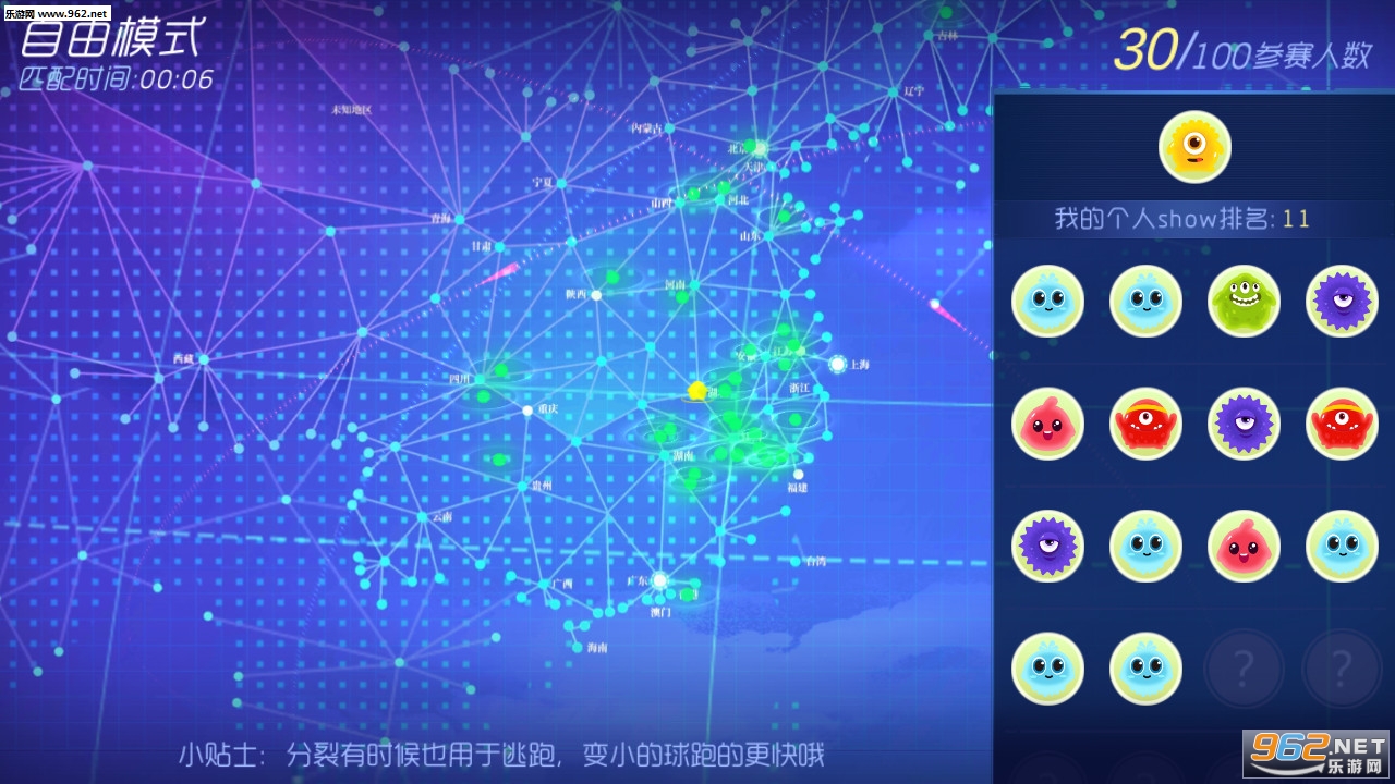 《球球大作战》是全球最受欢迎的休闲竞技手游大作,亿万玩家的共同选择!这是一款超好玩,超萌酷,超有挑战性,可与全球玩家实时对战的休闲竞技游戏。在这个球球的世界里,每个人都化身为一颗独特的球球,大球吃小球,努力生存下来就是唯一目标。嘿,成为一个“球球巨无霸”是每个球球的梦想呢!大球吃小球是这个世界的真理!变大变胖是这个世界民众的梦想!只要合理控制球球的运动路径就可以吃掉沿路的小球球,变大变胖变强!小球不要沮丧,飞毛腿的你,只要不停的吃,终有一天你也会成为无敌的胖纸呢!大球也不要轻心,身为胖纸的你,横行霸道的时候千万小心暗器噢~