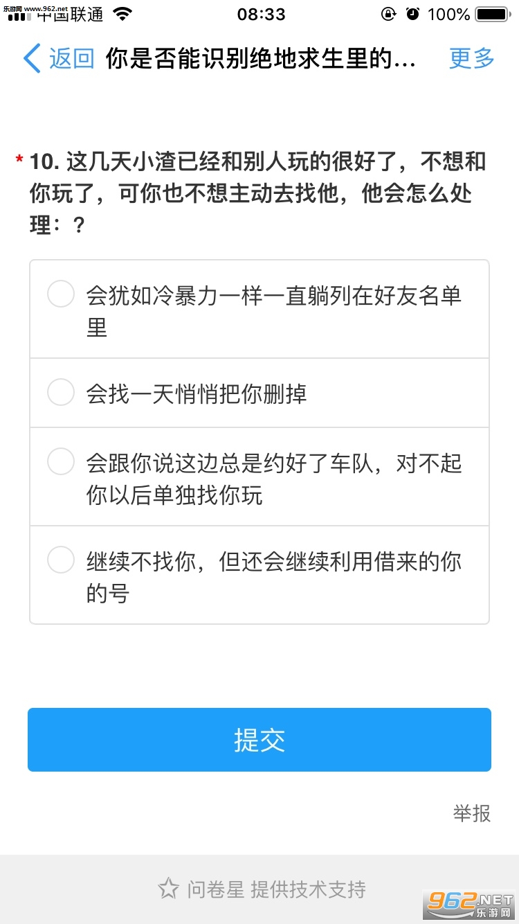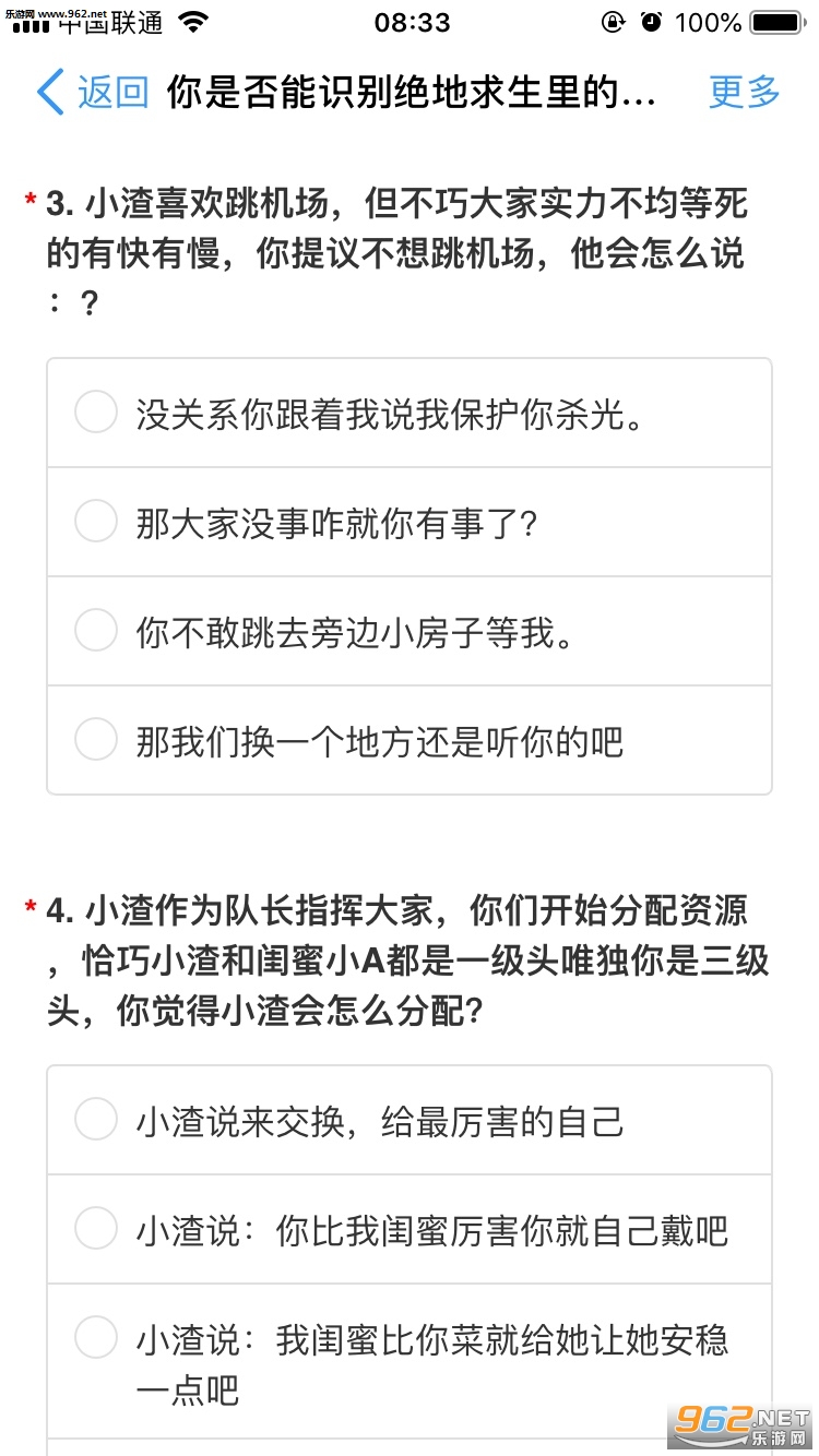 2、测试一共有十个不同的题目,这些题目都取自于平时常玩绝地求生中的各种情况;