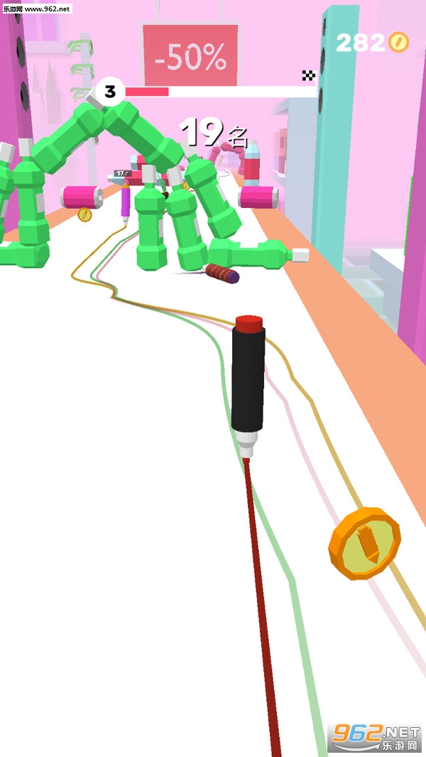 控制你的水彩笔与对手展开竞争,沿着跑道争取第一个到达终点。
