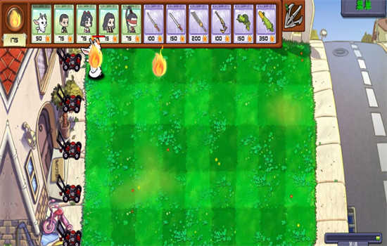 3、在第2和4种植火葫芦,直接操控火葫芦攻击火把僵尸,