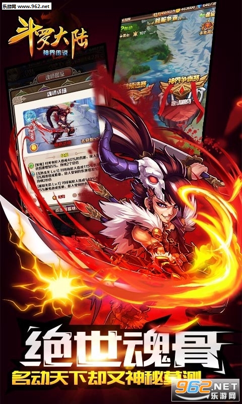 缘分卡牌共同上阵,可触发武魂融合技,华丽的视觉效果,强悍的打击力,将游戏推向高潮。武魂合体技完全遵照原著描写,幽冥白虎变、修罗血剑,熟悉的名字让人回归原始的感动。