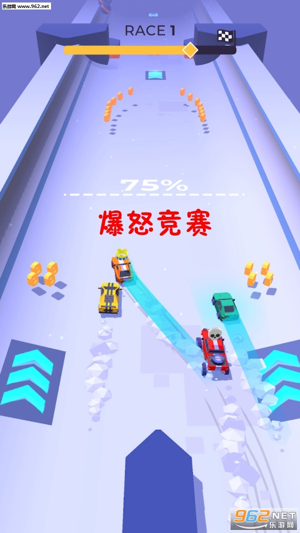 3、3D的游戏画面,卡通的趣味赛车,疯狂刺激的赛车还有更有趣味的玩法体验。
