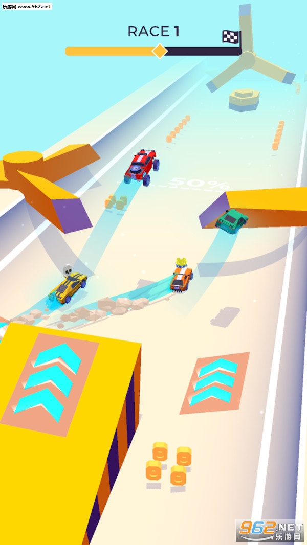 急速的驾驶中你可以不断的收集跟多的金币,快速的冲刺超越每一位对手。