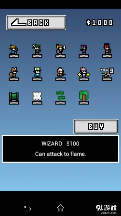 此外,游戏为了保障可玩性和深度,玩家还可以在商店那里利用打怪积累下来的金钱购买不同的职业和将队友上限扩充为3人,虽然能发挥效果的只有排在最前面的角色,但是只要按一下画面右上角的change按钮就能换转角色,有能杀死死神的牧师,不会攻击到女性的绅士职业。依靠不同的角色组合就能合理的通过不同的关卡,但是要注意的是,不同职业之间会有独立的生命,如果后面的队友死了虽然不至于会game over,但是就会没有了相对的职业更换。