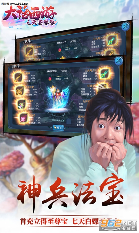 4、首充直接赠送极品神将至尊宝,还可以直接获得VIP12。VIP礼包赠送诸多道具全部免费送,特权全开,玩游戏也就没有压力。享受着跟正式服土豪一样的游戏方式,让您在大话西游世界为所欲为。紫霞、白晶晶都将会是您的随从,助您体验西游的乐趣。