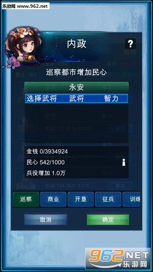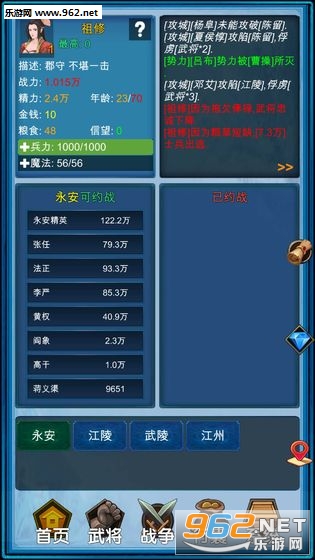 3、可设置包括内政、军事、人才、管理、外交、计谋等近30个命令