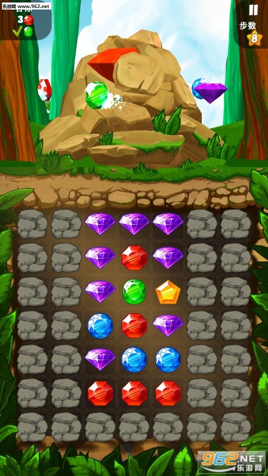 简约画风的连线消除游戏,每个关卡都有着特定的宝石需要消除收集,玩家需要在规定的步数内收集完,有着众多的关卡等着你来挑战。