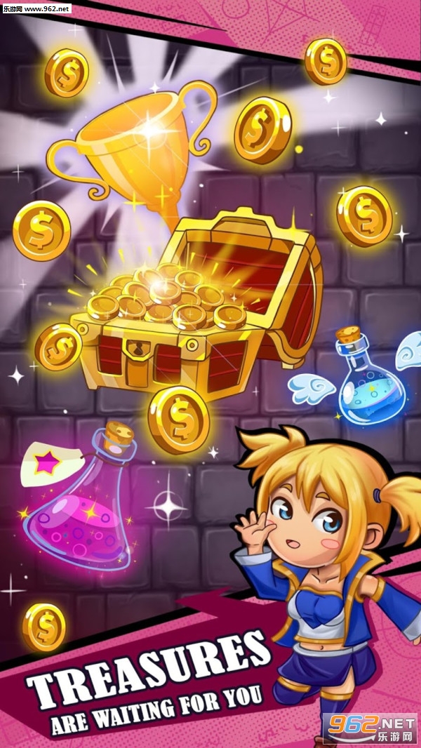 跳出地牢是一款非常有意思的无尽街机小游戏,用你的英雄,在充满危险和陷阱的地下城里,不断的寻找宝藏是你的终极目标,只有不断地收集这些宝藏金币,你才有就会,冲出这黑暗的地下城。这款游戏非常的有乐趣,也很有挑战性。