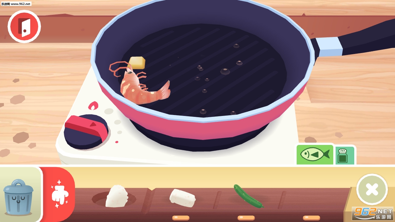 问候顾客,然后前往冰箱看看你所有新鲜食材。选择大米、金枪鱼、鳄梨、芦笋、鱿鱼、鲑鱼、辣椒、意大利腊肠、小萝卜、甘蔗(不开玩笑!)、姜、土豆、豆腐、虾等等材料。如果你更愿意选择蔬菜,可以切换成素食设置!