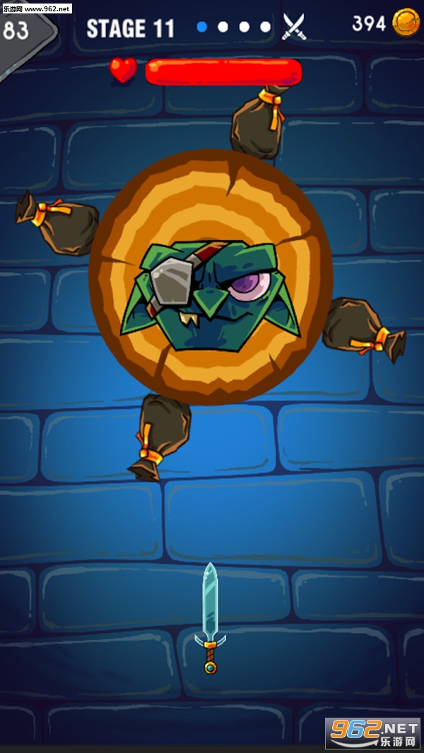 游戏模式还是很容易理解的,就是在游戏过程需要找寻很好的角度发射飞刀,要保证飞刀能完美的插在BOSS头上;