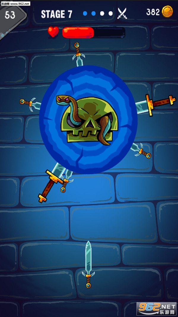2、这款游戏里,不仅仅是你插好的刀是你的阻碍,原本BOSS身上就存在阻碍,所以就更加的具有挑战性了。
