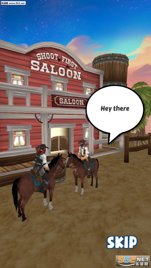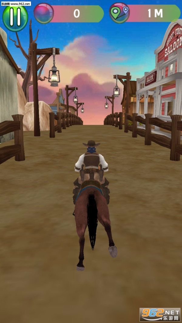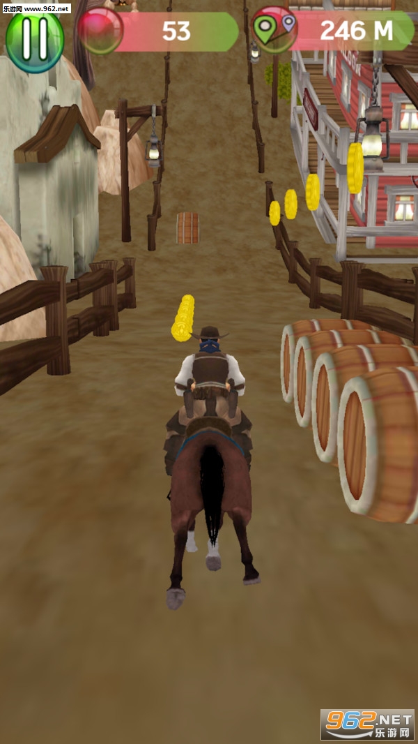 1、游戏采用了西部牛仔风格,在这里,你要骑马跑酷追逐抢劫犯。
