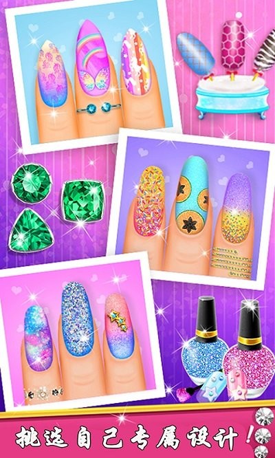 拥有数千种美甲模拟装扮设计育儿应用,发挥小朋友的创造力,打造公主美甲沙龙模型!开启全新美甲篇章!我们将会教你如何修剪指甲,不同于一般的美甲,在这里你可以跟随我们设计师一起装扮美甲,挑选新奇的颜色以及随意涂指甲油,经过美甲学徒阶段,记得完成我们布置的美甲挑战比赛,务必做到一模一样,不然将会被淘汰!