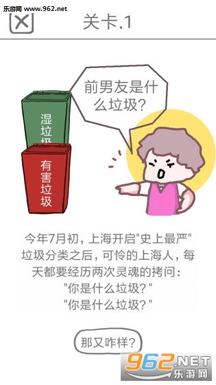 《前男友是什么垃圾安卓版》是一款很有意思的垃圾模拟分类游戏,对于前男友这样的话题相信对于很多人还是很热衷于讨论的,可是归类于什么垃圾就得因人而异了,游戏还设计了很多垃圾分类的问题,回答错误可是有惩罚的哦。