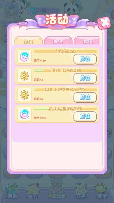 小熊工厂手机版游戏画风非常的可爱治愈,大家可以在游戏中看到非常可爱的小熊,在这里大家可以通过合成小熊来进行闯关,游戏中的玩法不会单一无聊,有很多的活动和任务等着大家,并且合成的过程非常的解压哦,这么多可爱的小熊等着你,来试试看吧。