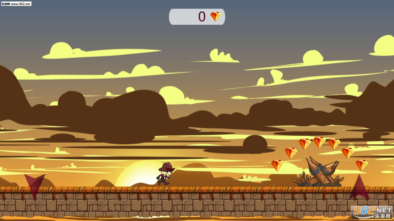 潇洒牛仔冒险是一款卡通风格的西部牛仔冒险闯关游戏。游戏以西部世界的黄昏景象作为背景,玩家在游戏中控制着牛仔小人进行木桶的翻越,钻石的收集,使用枪械,消灭那些危险的敌人,维护和平。