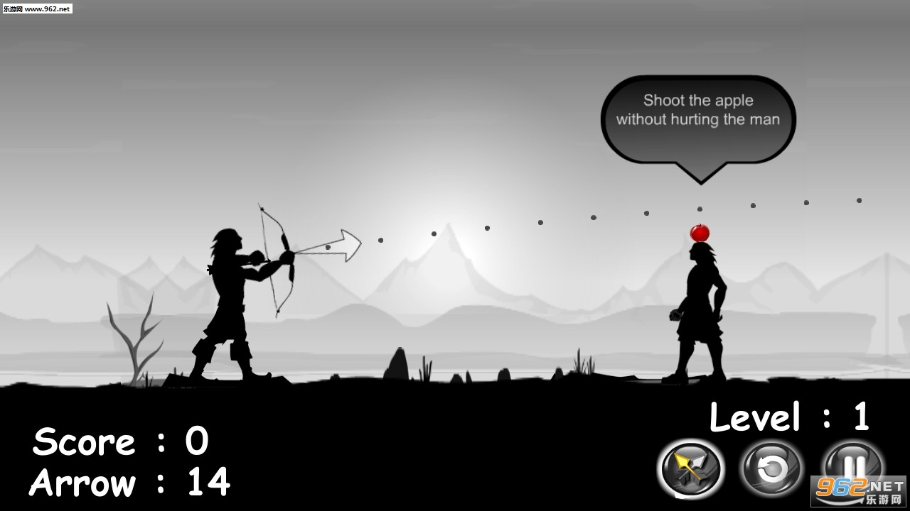《黑衣人苹果箭手》(DarkManAppleShooter)是一款简约风格的休闲闯关游戏,游戏中玩家将扮演一名神射手,每一关中你需要命中所有的苹果,这些苹果都放在人的头上,所以你需要有万全的把握去进行射击,还在等什么呢?赶快下载体验吧!