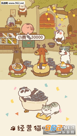 趣味的模拟经营游戏,玩家只需要不断的为来往的动物提供食物即可,赚取小鱼干,然后购买新的桌椅等,升级改造自己的餐厅,喜欢的朋友可以下载试试。