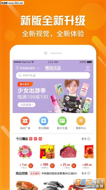 惠友乐选app是一款便捷的购物软件,帮助用户将线下实体百货超市搬到了线上,随时可以在平台内购买商品,为用户提供了购物的方便,所有可以在线下实体超市购买到的商品,都能够在线上购买到,小吃零食、饮料酒水、护肤产品等都有,足不出户就可以享受购物的乐趣;并且每一次购物都可以获得一定数量的积分奖励,累积积分,当积分的数量带到一定的数量之后,就可以使用赚取的积分兑换心仪的产品,在积分商城内提供的所有商品都可以直接使用积分免费兑换,一款非常实用的购物应用,赶紧下载软件使用吧。