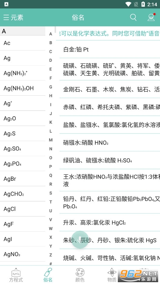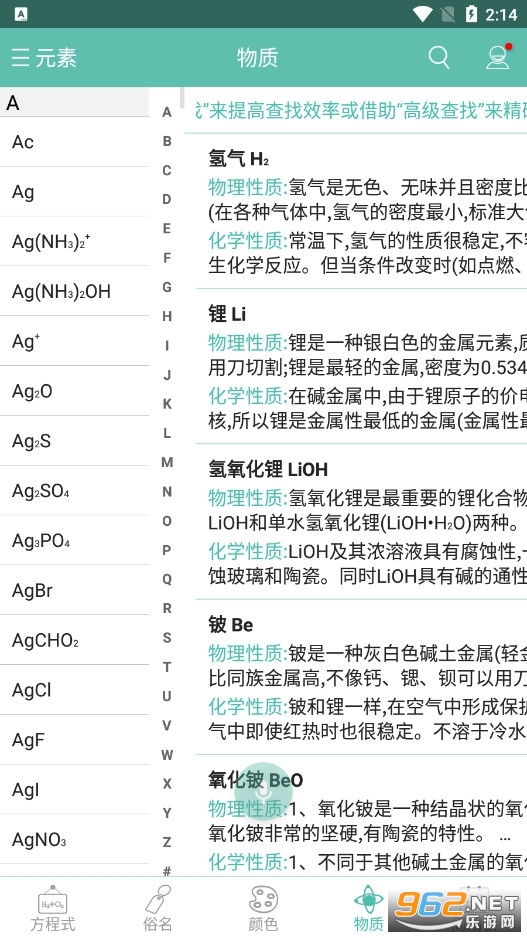 《化学方程式app》是一款以化学为核心内容的学习软件。用户能够通过软件查询所有化学元素以及方程式等,主要分为五大板块,让大家能够以最便捷的方式进行查询,从此化学再也难不倒你啦!有需求的朋友们就快来下载使用吧!