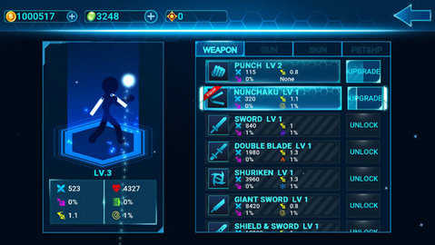 3、游戏的养成系统也非常完善,你可以通过升级、强化等方式来提升你的火柴人战士的实力。