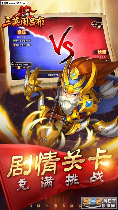《三英闹吕布》是一款三国题材的卡牌策略手机游戏,它的主要特点是军团作战,横版对冲,强调布阵策略和临场技能释放,让你淋漓尽致的体验指挥千军万马的大将之风,秒杀以往枯燥乏味的自动战斗模式。玩家可以率领40来个各具特色的史诗英雄,包含几百种武将技能,指挥300名以上的单位同屏厮杀,缔造“军团对战”的史诗感。能感受到“一夫当关,万夫莫开”,“大将冲锋,如入无人之境”的爽感。游戏提供丰富的成长系统提升玩家战斗力,更有宝物道具助玩家一臂之力。
