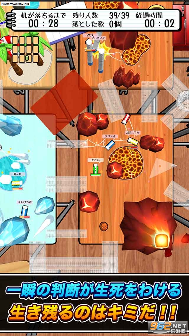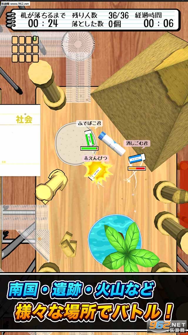 游戏采用了经典大逃杀的玩法,拥有多个不同的场景,如火山,海边,遗迹等等地图让你挑战,在这里你将和其他的玩家在桌子组成的战场上,通过橡皮擦来角逐,快来下载吧!