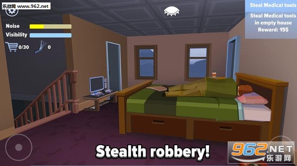《偷偷摸摸模拟器游戏》是一款很有意思的潜入游戏,游戏中玩家扮演一名小偷,你要趁着夜色潜入别人的家中,按照游戏发布的任务其盗取相应的物品然后卖掉换钱,你要小心一点,屋里的主人在睡觉,千万不要惊动他们。