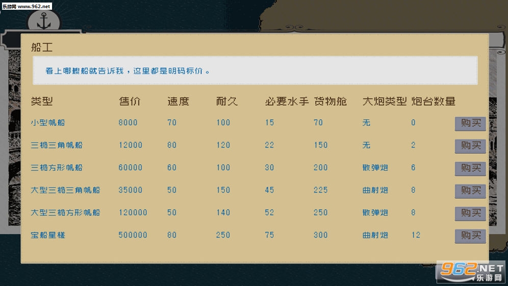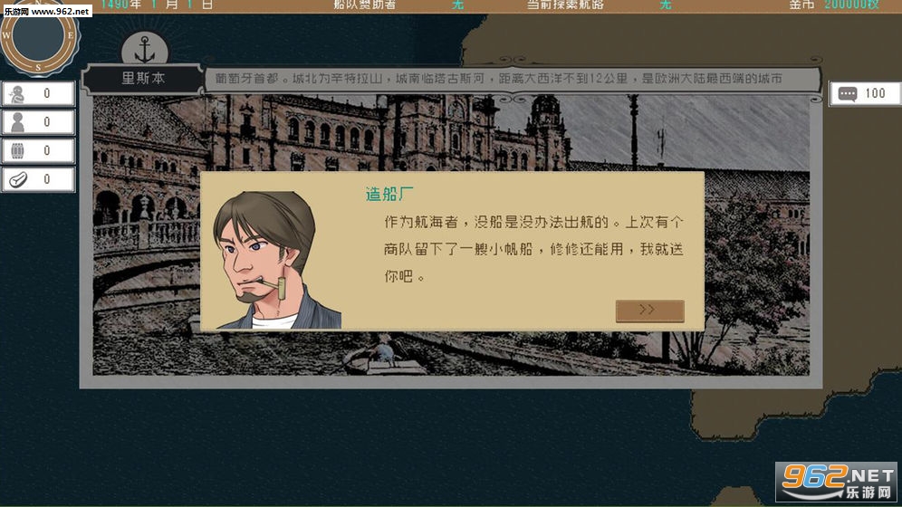 造船厂可以进行买卖船只改造修理船只等操作,拥有船只后在港口进行水手招募、布置船队阵型、补给资源就可以出海了,要注意补给支持天数哦,船上物资用完了水手是有可能会造反的~