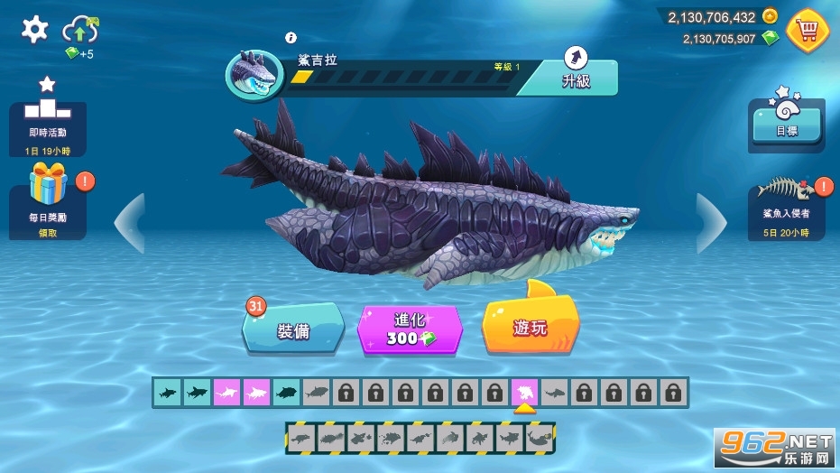 趣味的鲨鱼吞噬游戏,解锁虎鲨等众多的鲨鱼在海底吞噬战斗,小编带来的是饥饿鲨进化破解版,有着无限金币和钻石,玩家可以免费的解锁自己想要的鲨鱼,喜欢的朋友可以下载试试。