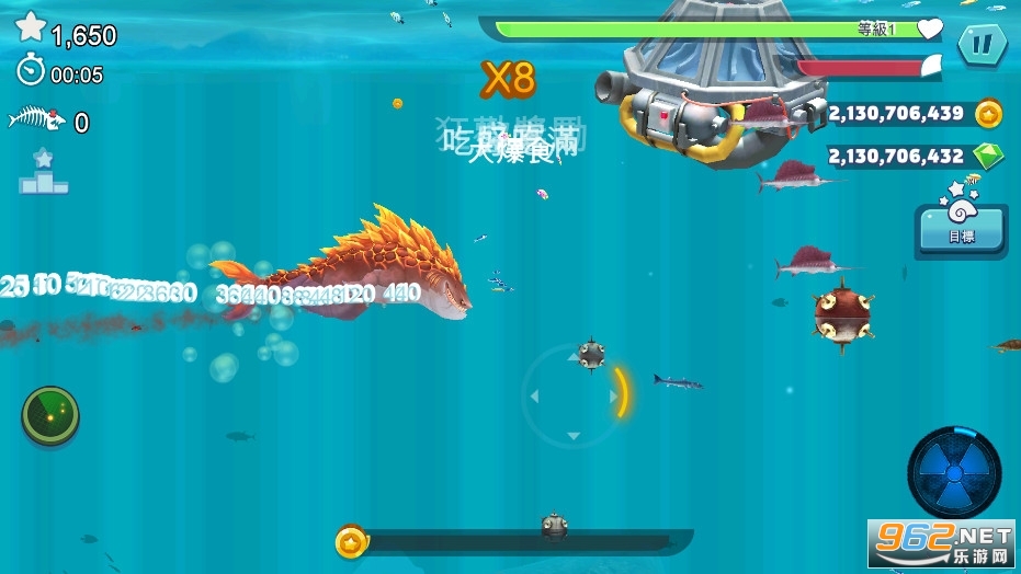 与其它鲨鱼、潜水艇、以及更多奇奇怪怪的深海生物作战,获得高分!