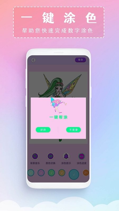 【一键涂色 畅快享受】秘密花园里面,还有一个超级好玩的功能,就是一键涂色哦!如果你想要更快的完成涂色,那么选择一键帮助来填色吧,畅快的涂色体验让你爱上它!