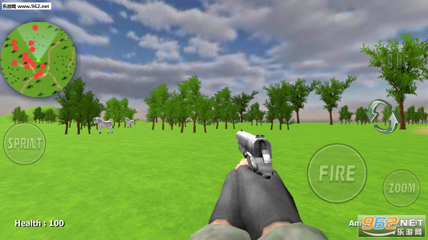 《非洲丛林狩猎安卓版》是一款画面清新的采用第一人称视角的捕猎射击游戏,游戏中玩家将扮演一个猎人在草原上冒险,这里有着斑马、鹿、狮子等众多的动物,玩家可以使用手枪、步枪、机枪等来射杀这些动物。