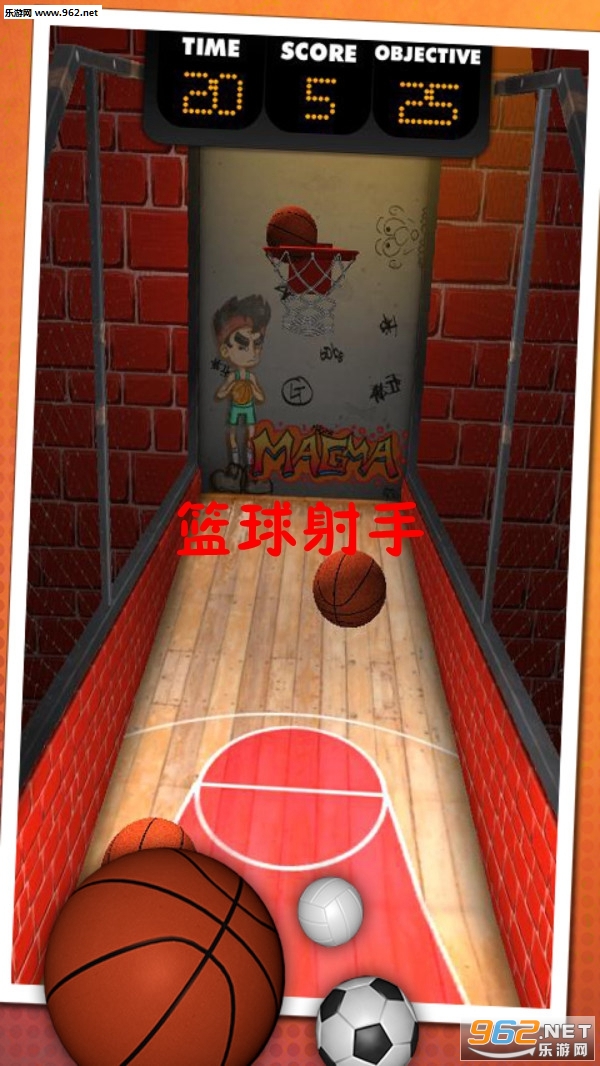 篮球射手是一款快节奏的投篮运动游戏。玩家在游戏中可以从各个方位角度进行投篮。选择自己喜欢的游戏模式,掌控力道和方向投出篮球即可,挑战自己的最高分,享受投篮的乐趣吧!