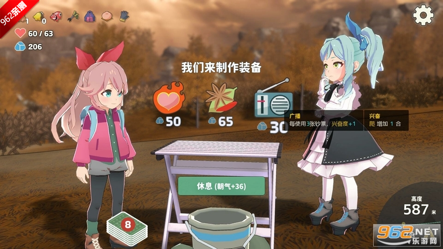3、游戏玩法主要是卡牌爬山为主,该有的准备一定要有,先制作一些能够辅助你登山的装备。