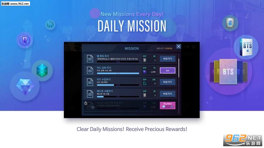 主要给喜欢防弹少年团的粉丝们打造的一款音乐休闲游戏,收录了很多他们的歌曲,玩家能够自己选择难度以及模式,完成各种精彩的任务。