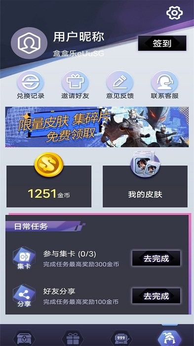 游戏福利领取平台。你可以直接在软件免费领取各种游戏福利,无论是游戏皮肤、游戏道具还是大礼包等统统都有,同时软件支持王者荣耀、和平精英等各种热门游戏,满足你的使用需求。完成任务换金币得好物!打开盲盒惊喜奖励送不停!