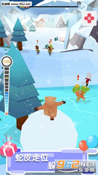 2、雪球可能会扎进很多的道具,比如石头,树枝,如果你躲不过去,不好意思,你可能看到这只熊惨烈的死法