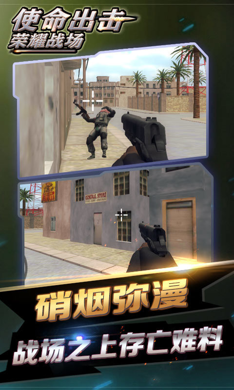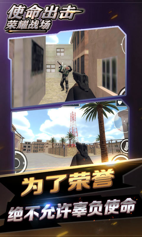 使命出击荣耀战场手机版带你在游戏中体验真实枪战模拟对战玩法,优质中帮助这个城市的人们解决掉所有的敌人吧,游戏中你将可以通过多种渠道来获得枪支弹药,在游戏中模拟真实射击玩法,在这里运用你的完美枪法,一枪一个坏人,成功的守卫这座城市吧。