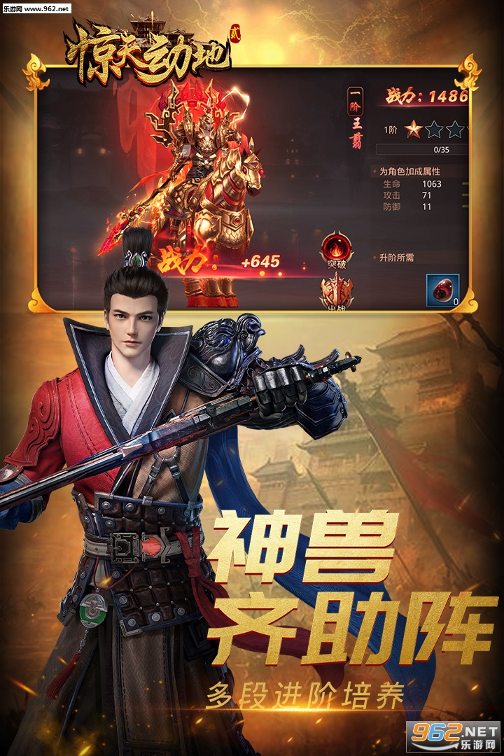 《惊天动地2》是一款战国风题材的大型多人在线MMORPG手游,以穿越故事为蓝本,讲述了21世纪特种精锐战士项少龙穿越到战国后发生的一系列故事。游戏依托U3D引擎出色的物理渲染技术,以第三人称45度固定视角即时战斗方式,为玩家打造最真实最原汁原味的战国世界。战士、刺客、法师自由操控,跨服竞技、BOSS挑战激情PK,寻宝、祈福福利满满!