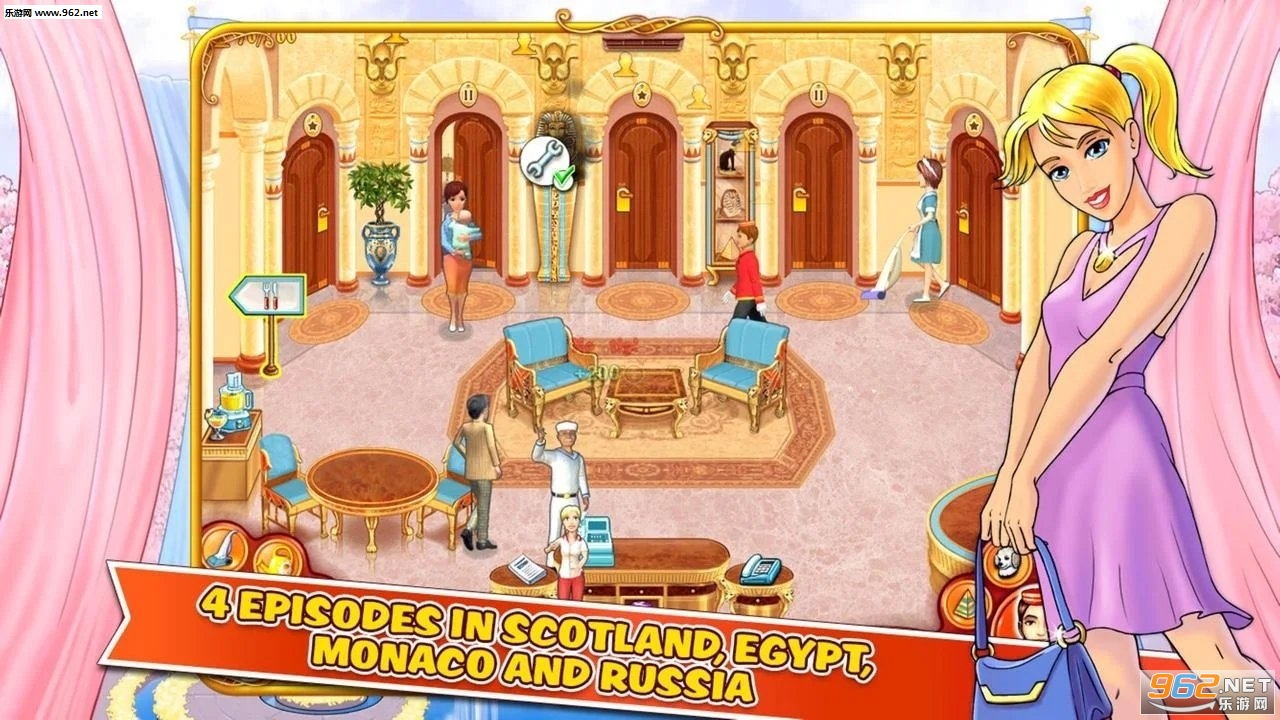 与珍妮一起旅行世界各地,请访问苏格兰,埃及,摩纳哥和俄罗斯成为一个真正的酒店大亨! 40个有挑战性的时间管理水平和8个激动人心的迷你游戏,一定会让你的旅程难忘!尝试完成得分最高水平,以建立自己的宏伟的豪宅!
