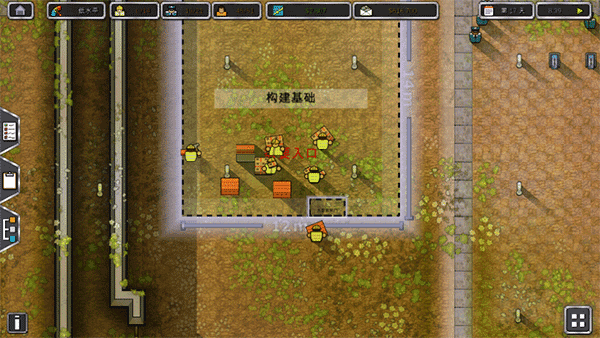 1、开始先造一圈栅栏,然后砍树卖钱,犯人收容关闭几天。