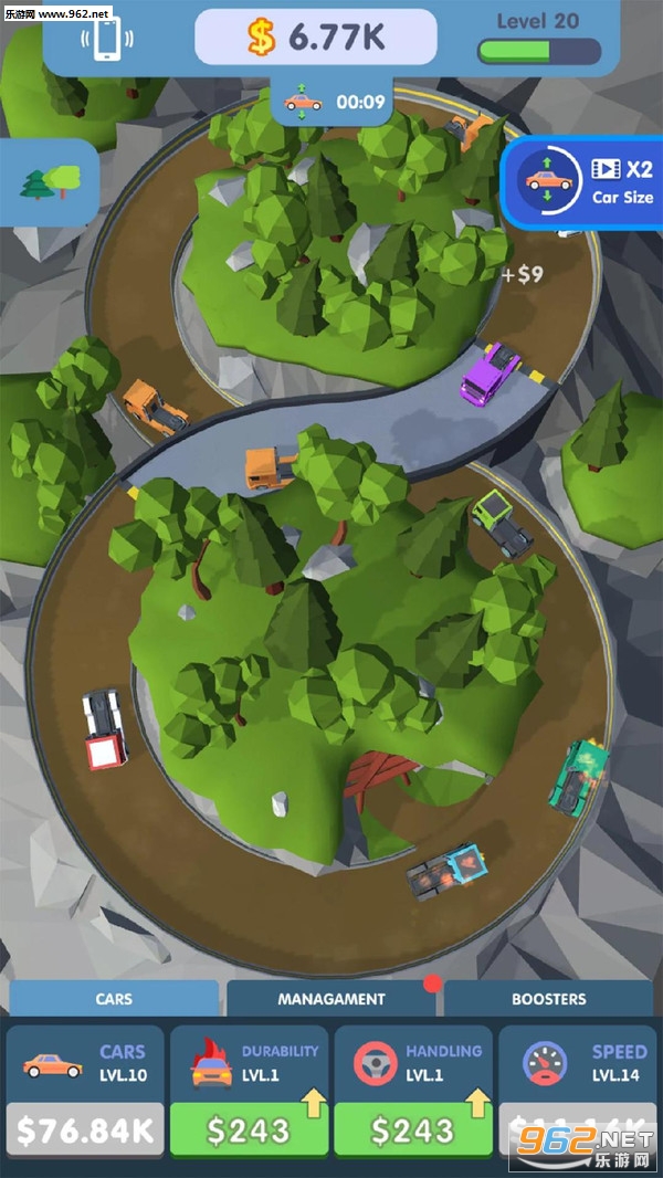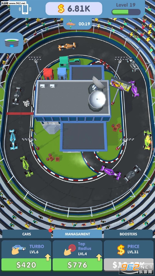 自由合并升级更新的赛车,在一个赛道上可以放置多个赛车来帮助玩家赚取收益,离线也能赚钱的。