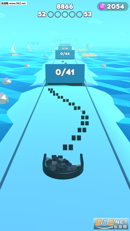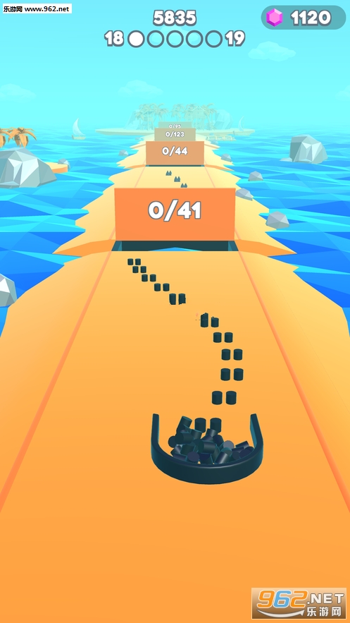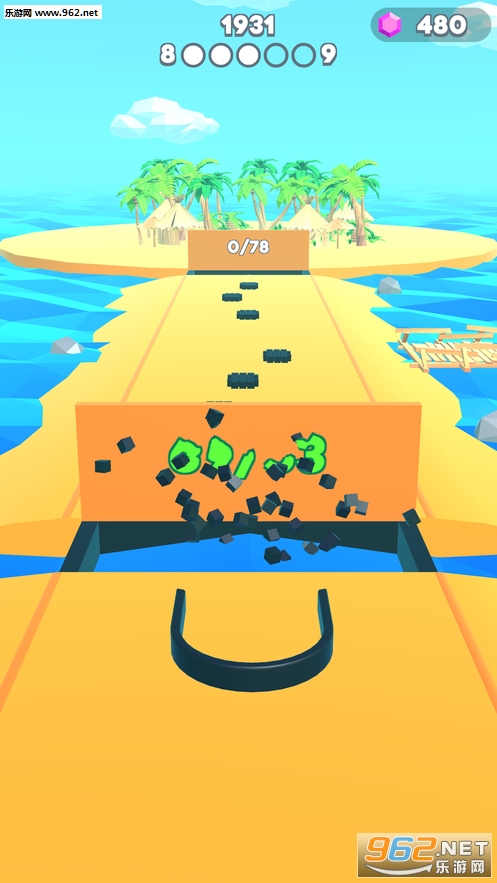 游戏操作非常的简单,控制U型凹槽将不断向前移动,收集石头清洁海滩。
